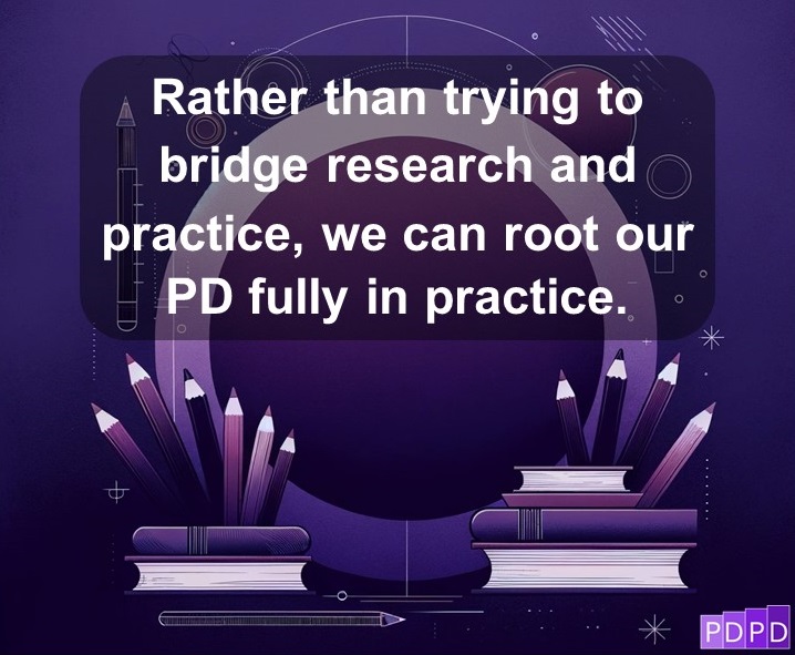 To be clear, this still requires great effort from the developers. We have been actively working for several years just to develop a small set of incremental PD nudges that we hope will have high uptake, and we are drawing on decades of research and varied professional experiences to do so. Research still has an important role to play (including basic research separate from practice). And there is still an important role for big thinkers and for insightful critics who can point out the need for transformation. But while that work is going on, incremental PD can also be underway striving to make small improvements over time.